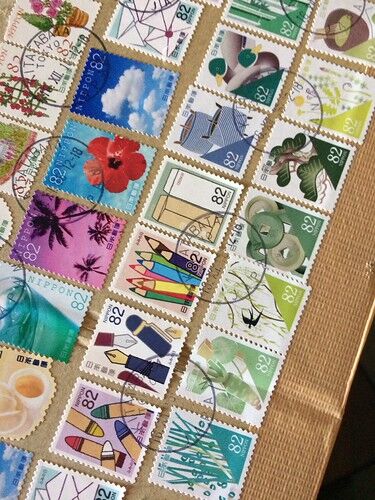 この時期、日本から荷物が沢山届いて、とても嬉しい。 これは従姉妹が送ってくれた箱に貼ってあった切手。